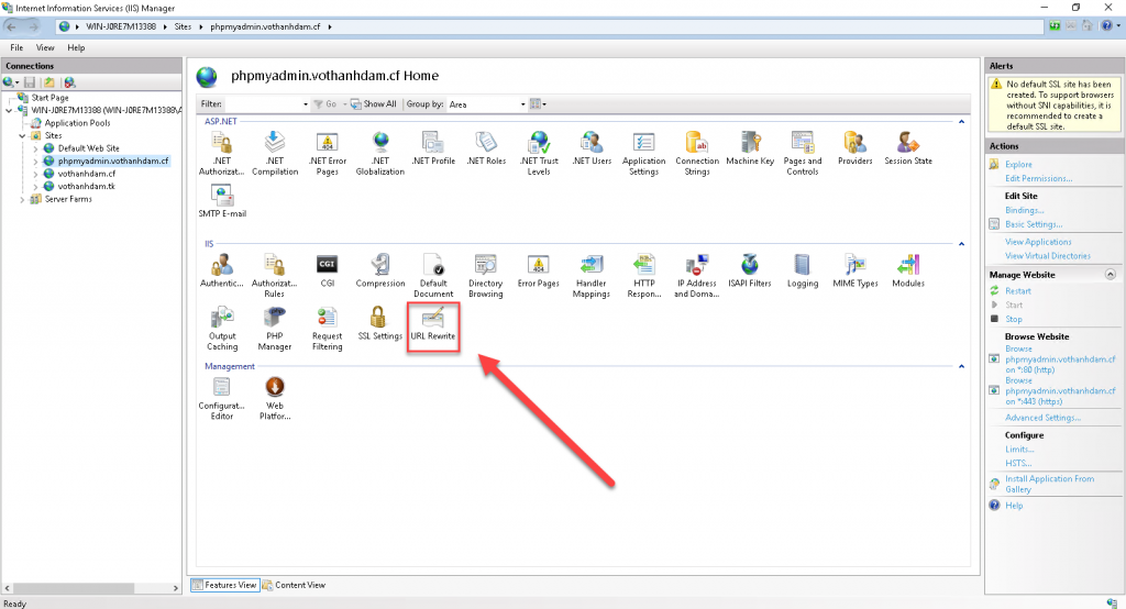 – Ta tiến hành truy cập URL Rewrite trên IIS Manager