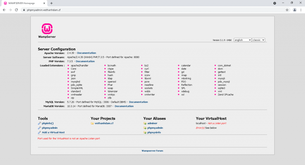 – Ta truy cập trang website: phpmyadmin.vothanhdam.cf để kiểm tra kết quả.